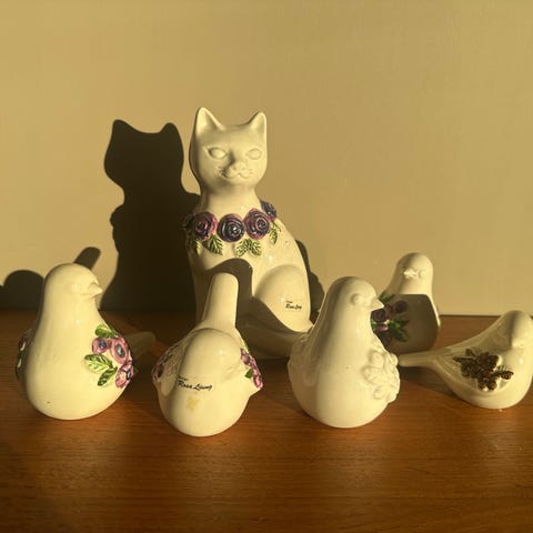 Rosa Ljung katt i keramikk håndmalt med ekte gull