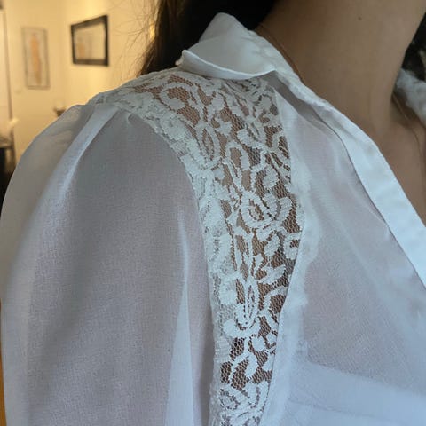 Ubrukt Linkjole, uten lapp. Vil passe str S til M. Nydelig broderi på armer i hvit farge og små knapper i ryggen. Selges mot at kjøper betaler porto.