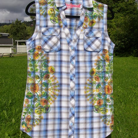 Fin skjorte fra Desigual. Pent brukt. Det følger med et belte, og den kan brukes både med og uten det. Det står str L i den, men jeg mener den er mer en nordisk str M.