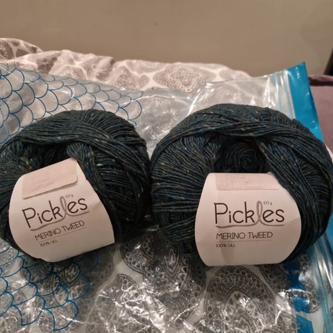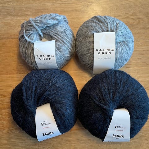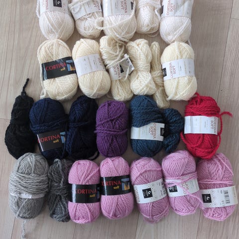 * I underkant av 100 g (2 nøster) farge 416 cocoa, dye lot 29. Nøstene er ubrukt, men ved veiing er det begge på rett under 50 g.