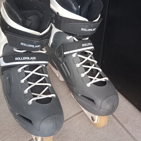 Str 43 Rollerblade Tempest 90 sg9 selges da de er for avanserte til meg. Lite brukt, maks 2-3km. Står 42.5 i storrelse men jeg bruker vanligvis 43-43⅓ og de passer perfekt.