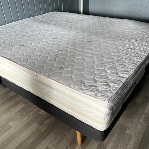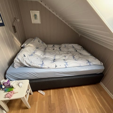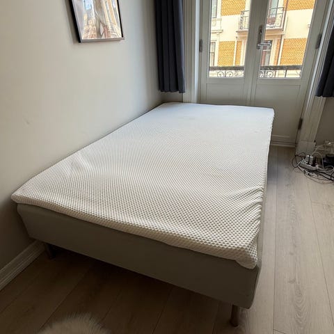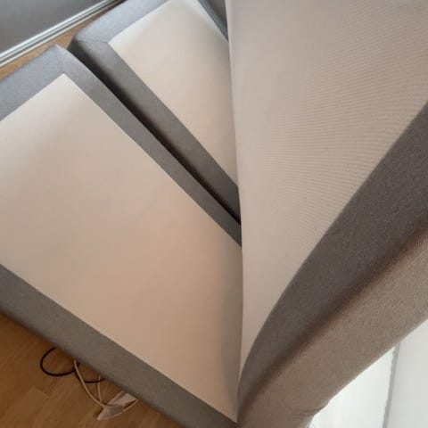 To 75 cm senger kjøpt på Jysk for et år siden. De er satt sammen til en dobbeltseng med overmadrass. Dreamline. En liten bulk på overmadrassen. Vært sånn siden den ble kjøpt. Ny pris er 6000kr.