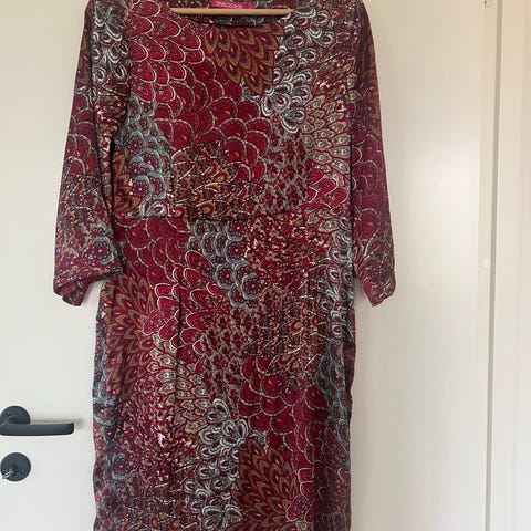En helt nydelig kjole til sommerens fester og festivaler! Nydelige broderier, helforet og med masse glitrende paljetter!