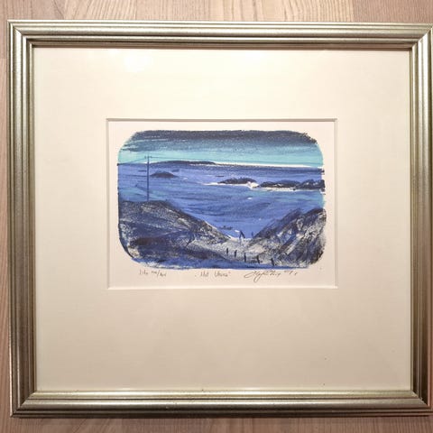 Oluf Høst (1884-1966). Litografisk tryk. Nylars rundkirke på Bornholm. Nr. 262/360 dateret 1951.