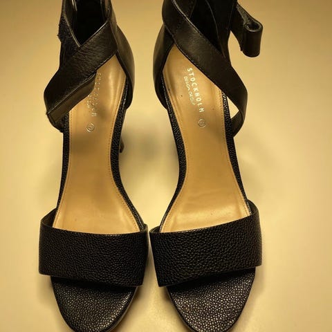 Selger pent brukte sandaler med høye hæler fra Stockholm design group. Sandalene er i str. 40, men litt små i størrelsen.