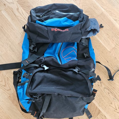 Fin og god liten dagstursekk med praktiske lommer og reimer. To sidelommer, en topp lomme og en lomme på bunnen. Integrert regntrekk. Brystreim og magereim for bedre justering og komfor ved bruk av sekken. Selvsagt justerbare bærereimer også. Ikke justerbar ryggplate. Brukt noen få ganger. Kan sendes mot at kjøper betaler frakten.
