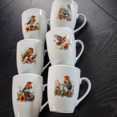 Koppen rommer 2,5 dl drikke og er meget god å drikke av. Dette er en perfekt gave til deg selv eller noen du er glad i. Nydelige fugler, duse farger, trær, løv og natur 💚