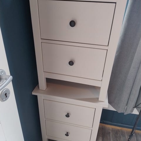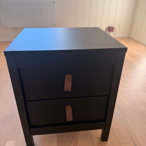 To nattbord til kr 1200,- Pent brukt med noen få bruksmerker. Farge brunsvart.