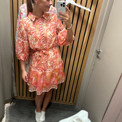 Sommerlig, lang kjole i fine farger, str M ( står S, men tenker den passer bedre en M), brukt kun et par ganger, selges kr 400,- pluss evt frakt.