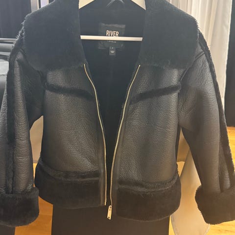 Ny/ubrukt sort jakke i kunstig skinn fra River Island str 14 (norsk str 40)