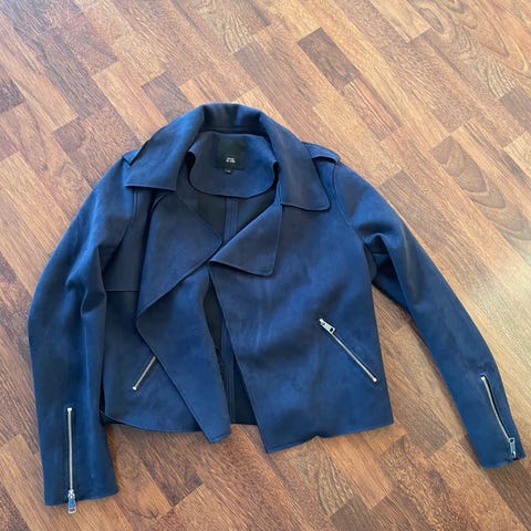 jakken er foret, myk og i utmerket stand, lappen ble tatt av