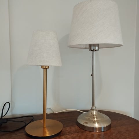 Er bruksmerker på ledningen til den ene lampe, sees på bildet. Begge funker fint. Må hentes.
