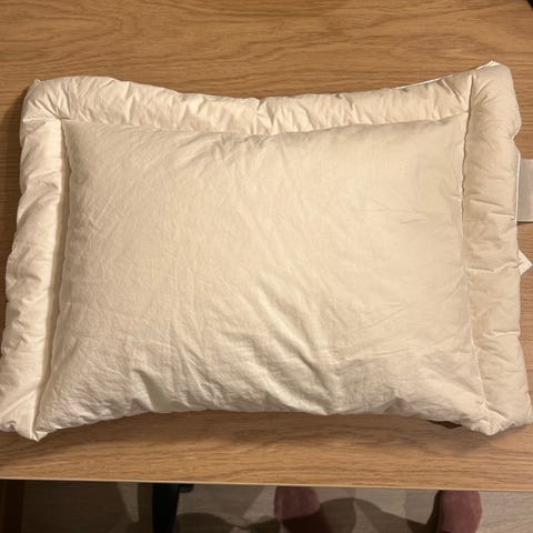 Alvøy barnepute 40 X 60 cm i dun fra Kid. Kjøpt til barnebarn, brukt 1 gang. Nypris 600,-.