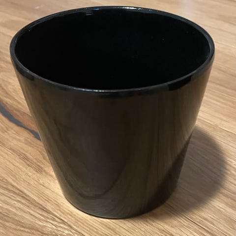 Selger to svarte potter. Bredde ca 10 cm. Kjøpt ny av oss. 50 kr per stk eller 75 kr for begge.