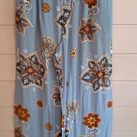 3/4 lengde som avslutter med en pen mansjett, strikk og knytesnor i livet