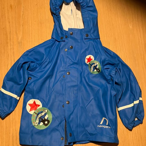Navigare regnjakke. Str 92/2 år. Blå farge. Søt edderkopp. Hel og pen. Se bilder.