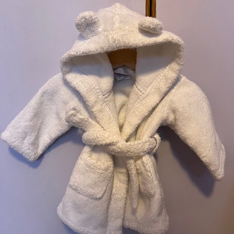 Lite brukt Lasarito badekåpe str 1 år. En liten flekk på fremsiden, se siste bilde.