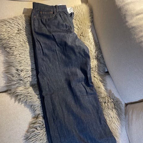 Disse medium/lette, rette jeansene fra Paige (USA) har en middels høy midje (like under navlen), glidelåsgylf og er litt cropped. De er i størrelse 26.