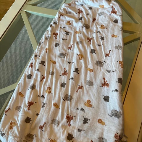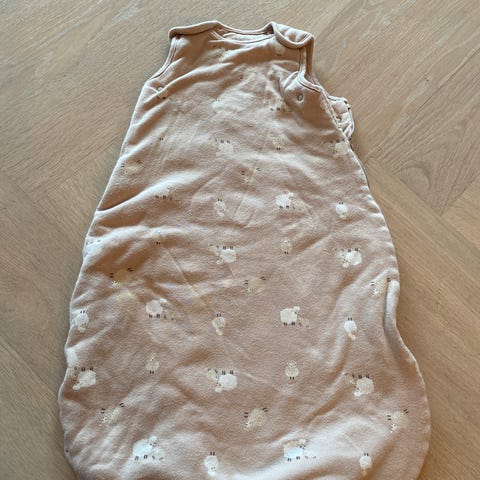 Ny sovepose fra Lupilu, str. 70, 0-6 måneder. Usikker om TOG rating, tror det er 1.0 - lett for sommeren. 100% bomull. Liten blå prikk på forsiden fra en penn, tror den kommer ut i vask.