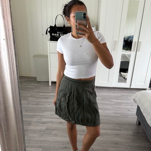 Love Lolita, står str. XS på lappen, men passer også S. Hvit bunn med rosa broderier.