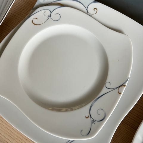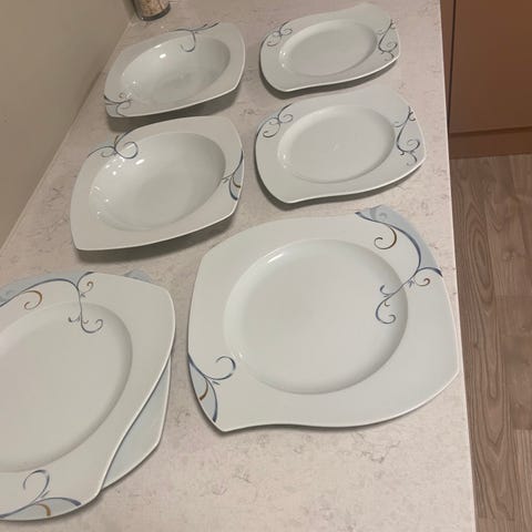 4 frokost tallerkner og 2 middags talerkner.