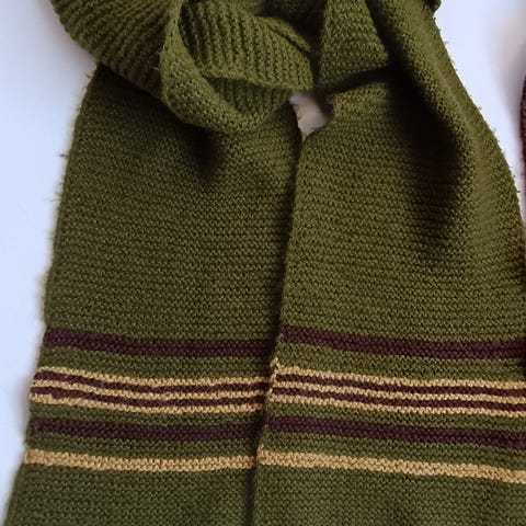 Skjerfet har noen lyse grå flekker som jeg har tatt nærbilder av, disse oppsto når jeg kom borti noe kull så burde være mulig å få vasket de bort med rett såpe.