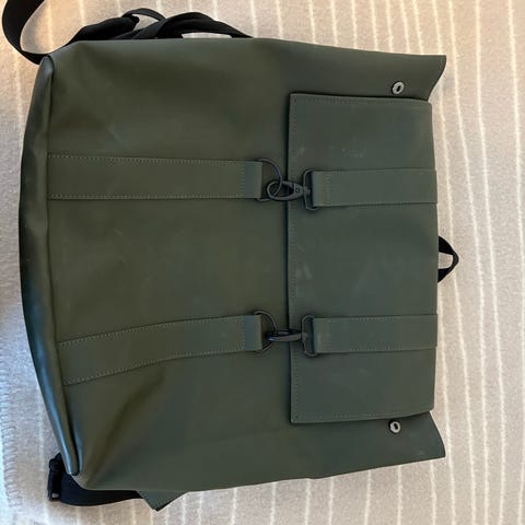 Pent brukt ryggsekk i imitert skinn (polyuretan) til salgs.