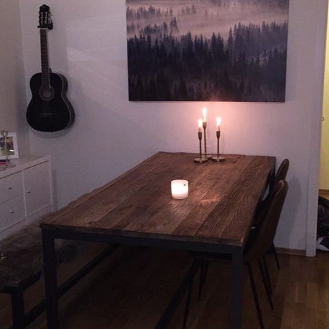Seks år gammelt og pent brukt Milano spisebord fra Boconcept. Har Butterfly-ileggsplate og kan bli 188 cm langt. Uten plate er det 140 cm. Det er et lite sår i bordkanten på 3 mm, jf bilde og som knapt er synlig. Nypris var kroner 9 400. Selges pga flytting