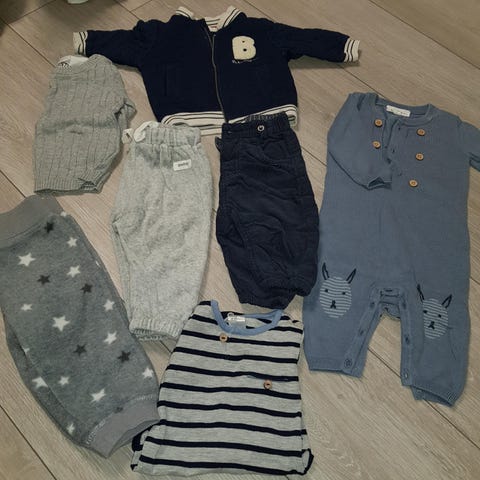 Pent brukt baby klær i størrelse 6-9 måneder + 3-6 måneder. Jakken er kun vasket, ikke brukt(størrelse 62) fra reflex.