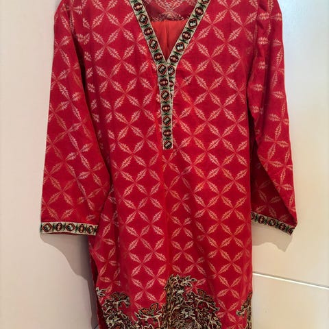 Veldig fine detaljer. 3 deler følger med, kjole, bukse og skjerf.