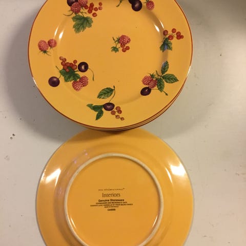 5 tallerken ca 21 cm og 1 serveringsfat ca 29 cm med fruktmønster. Selges hbo kr 500
