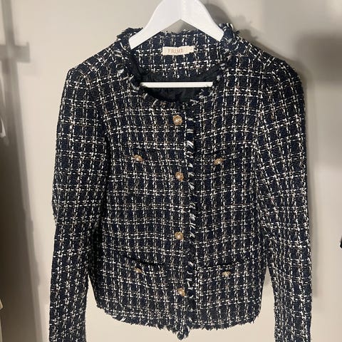 Tweed blazer sort blå (38)