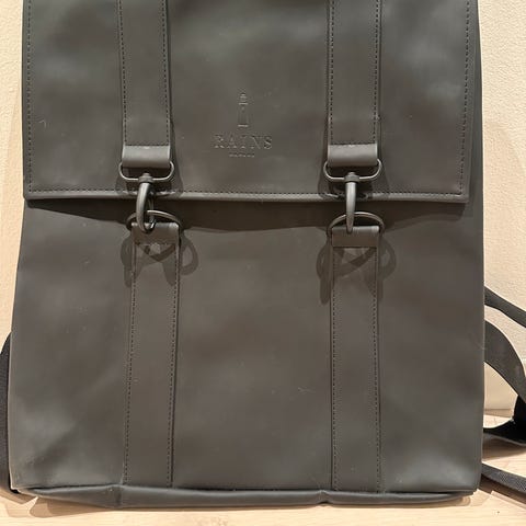 Selger en svart Rhino bag. Baggen har mange lommer og sterke glidelåser. Godt brukt med synlige bruksmerker, men mye liv igjen. Man får pakket utrolig mye i baggen pga. mange lommer utenpå.