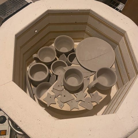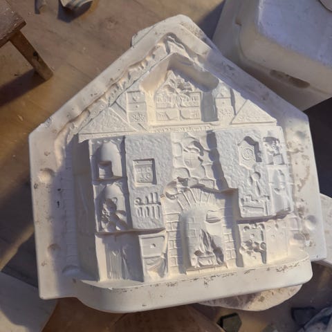 Formene er i gips, så de er tunge og noen av dem er også litt store. De støpes i med flytende leire, men jeg har også trykket leire inn i de. Jeg vil tro at man også kan bruke lufttørkende leire til dette dersom man ikke har ovn, men det har jeg ikke prøvd.