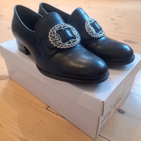 Selger disse vakre bunadsskoene i størrelse 38! De kommer med 2 ulike lisser og er så god som ny, kun brukt et par ganger💗