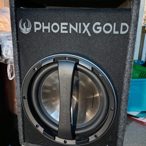 Ble kjøpt hos bilradiospesialisten for 6000kr med forsterker. Var 1 phoenix gold 12" og 1 passiv element, tok ut det passive elementet og kjøpte et billig element på biltema for 600kr eller noe. Elementet fra Phoenix er trolig sprengt og veldig usikker på det fra Biltema etter som jeg ikke har brukt denne på lenge