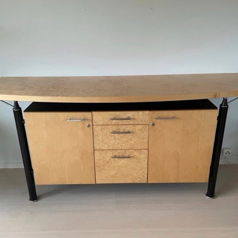 Selges gr flytting. Flott sjenk med masurbjørk på topp og skuffefronter