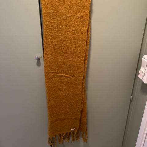 Skjerf mes trendy mønster og frynsete kant. Størrelse: 80x180. Color: navy. Polyester