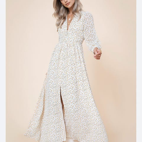 Nydelig kjole fra Adoore i et romantisk design og lett kvalitet. Napoli Dress er en drøm av en sommerkjole. Har v-utringning i front, lengre lengde, lange ermer med volum og stramme mansjetter. Innsvinget midje hvilket gir en feminin passform til alle figurer og en elegant look. Den perfekte sommerkjolen til ulike anledninger! Kjolen er brukt 1 gang. Som ny!