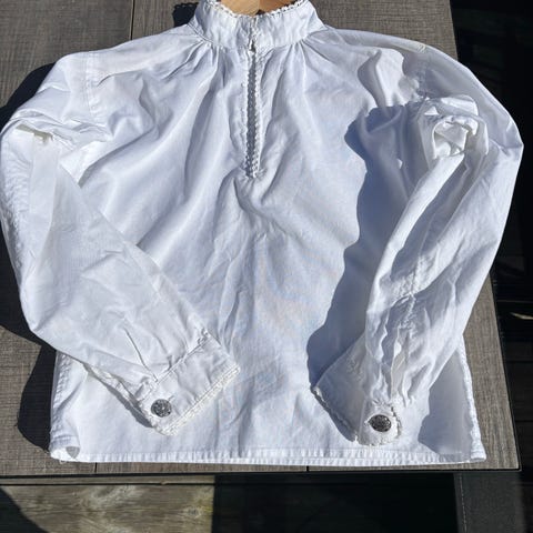 Meget pent brukt bunadskjorta str 140. Ren og pen til neste feiring🇳🇴 Kan gjerne sende.