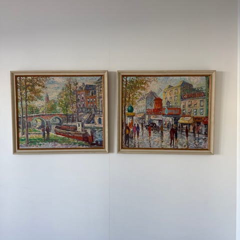 Gatekunst fra Roma. Komplett med ramme. Signert akvarell av kjente landemerker piazza navona og Triumfbuen i forum romanum. Selges samlet.