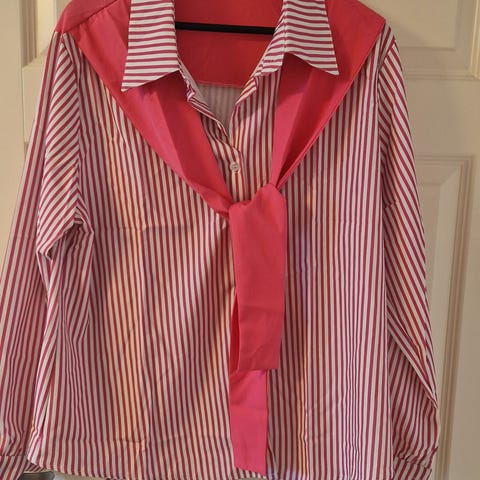 Nydelig bluse fra Lindex. Rosa/rød- og hvitstripete med volanger. Er str. 40, men syns ikke den er spesielt stor i str. Jeg bruker vanligvis smal, og den passer fint.