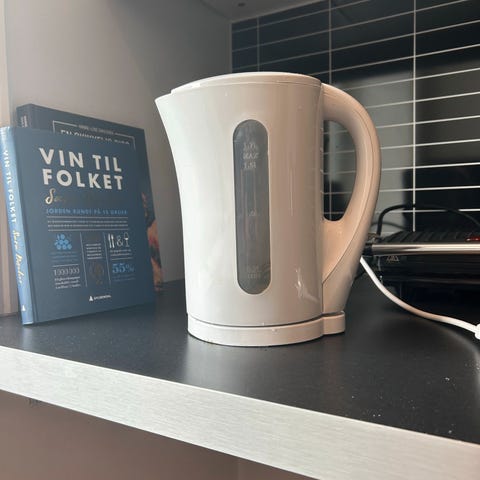 Pent brukt vannkoker selges. Koker vannet kokende varmt