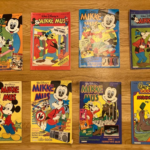Disney Mikke Mus tegneserieblader i samling. Flere hefter med fargerike omslag og klassiske historier med Mikke Mus og andre kjente figurer fra Disney-universet. Egner seg for lesing, samling eller som tillegg til eksisterende tegneseriesamling. Antall blader, årganger og eventuelle spesialutgaver kan kontrolleres nærmere ved behov.