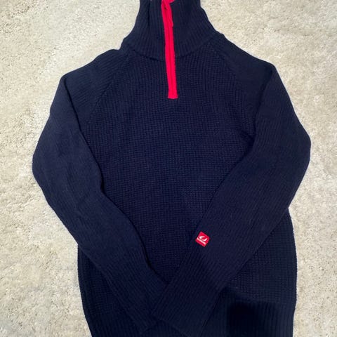 Unik Armani genser - str XXL - nesten ubrukt. Mørkeblå. Heklet bomull. Ene hempen har falt av , men funker fint uten eller enkel og fikse ny + en liten løs tråd (se merket på bilder). Genseren er strøken og kun brukt et par ganger.
