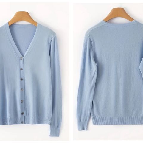 Fin strikket jakke. Knapper i front. Deilig Viskose. Str. 44/46