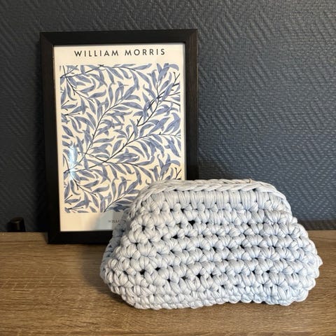 Blå clutch selges✨ Clutchen er heklet og passer perfekt til å brukes som veske nå på sommeren. Den kan både bli brukt som en fin veske eller som en toalettmappe. Den har plass til alt fra mobiltelefon, lommebok, bilnøkler, sminke og diverse. 💞 Jeg kan også lage i andre farger hvis det er en spesifikk farge du vil ha, bare å si ifra🤩
