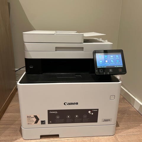 Fungerer som den skal. Mye toner igjen. Kjøpt på Canon hvor man kan opprette serviceavtale om ønskelig. Har vært en fin og lojal samarbeidspartner på vårt kontor. Gjør jobben! Printer på opp til 360g papir. Flotte bildeutskrifter.