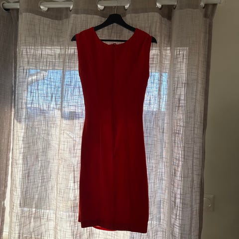 Perfekt silkekjole til fest eller en spesiell anledning. Du kan pynte den opp med et belte eller en statement halssmykke og høye hæler. Halsen er i bateau stil, den har glidelås på siden, er gulvlengde og har korte ermer. Kjolen er laget av 100% høykvalitetssilke, foret er også silke! Vaskes skånsomt på 30° (bruk vaskepose!) eller sendes til rens. Verdi 8000 kr. Siste bilde viser hvordan den sitter på.