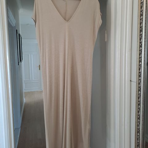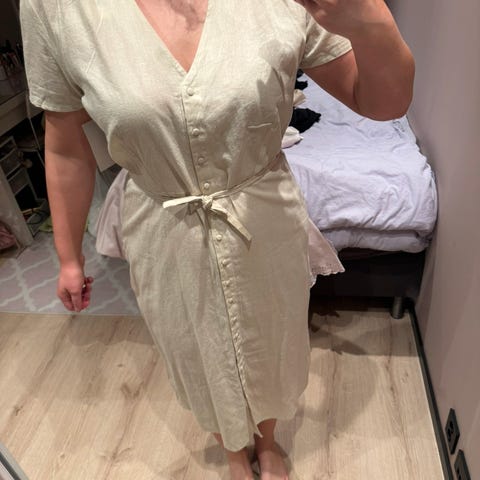 Den er i størrelse XS/S, og den er sannsynligvis midi-lengde på de fleste. Jeg er ganske lav (<154 cm), så den er nesten en maxi på meg.